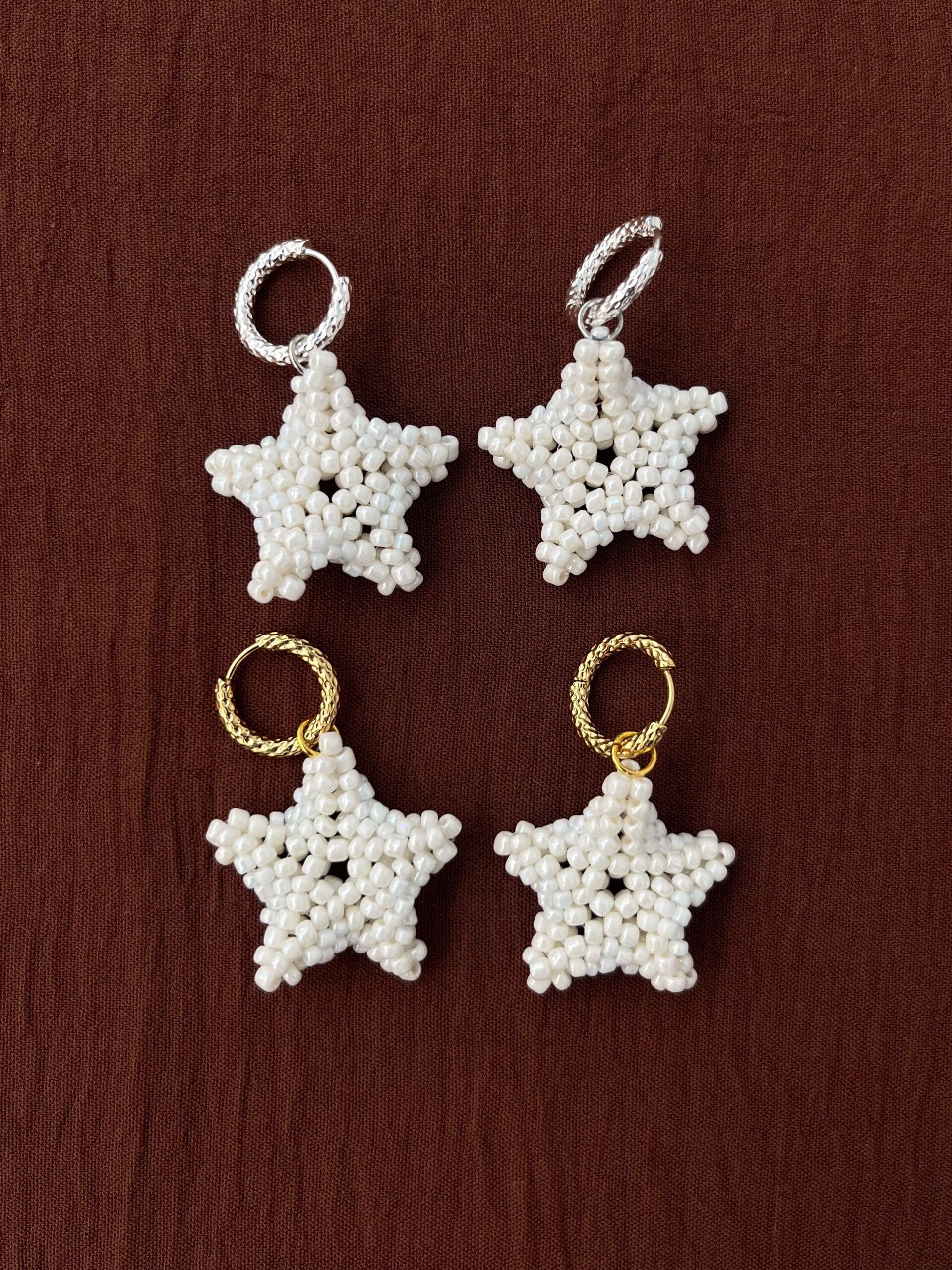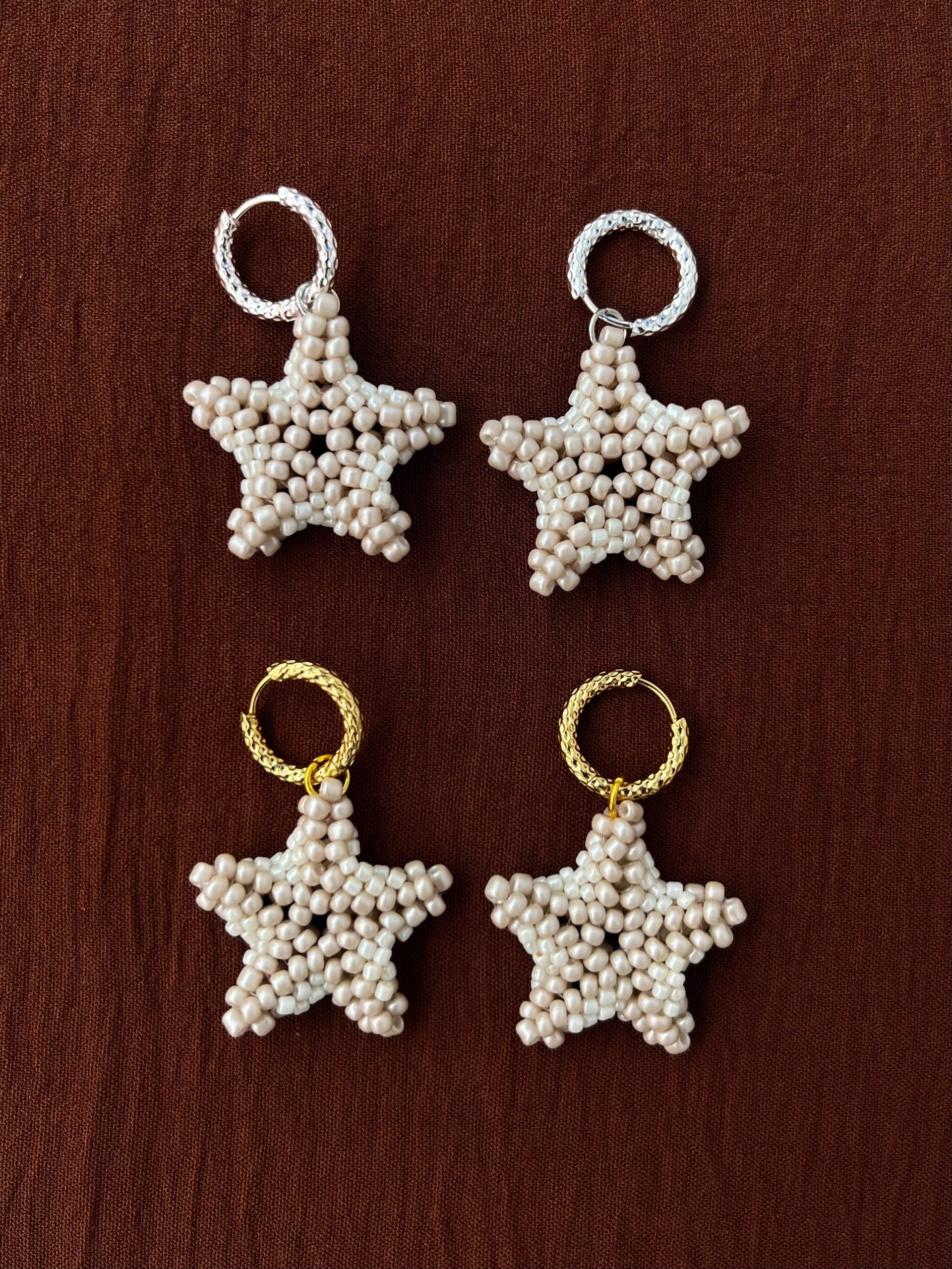 Dijes estrellas de mostacillas hechos a mano. 3 cm de largo.