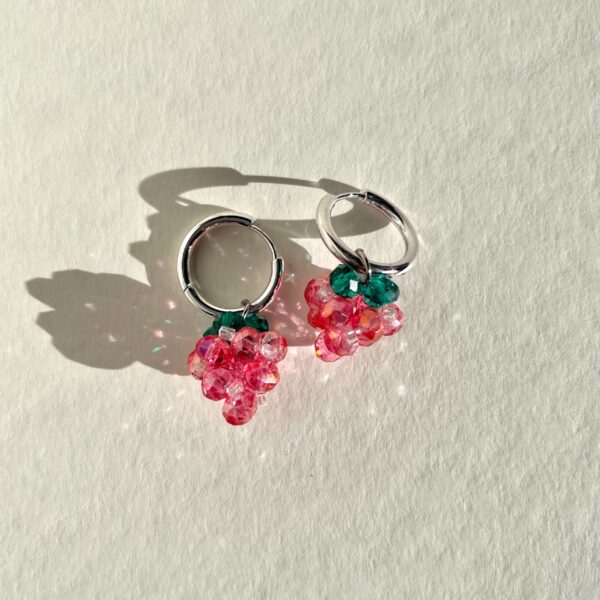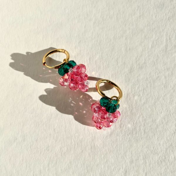 Dijes frambuesa de cristales y mostacillas checas hechos a mano. 2 cm cm de largo.