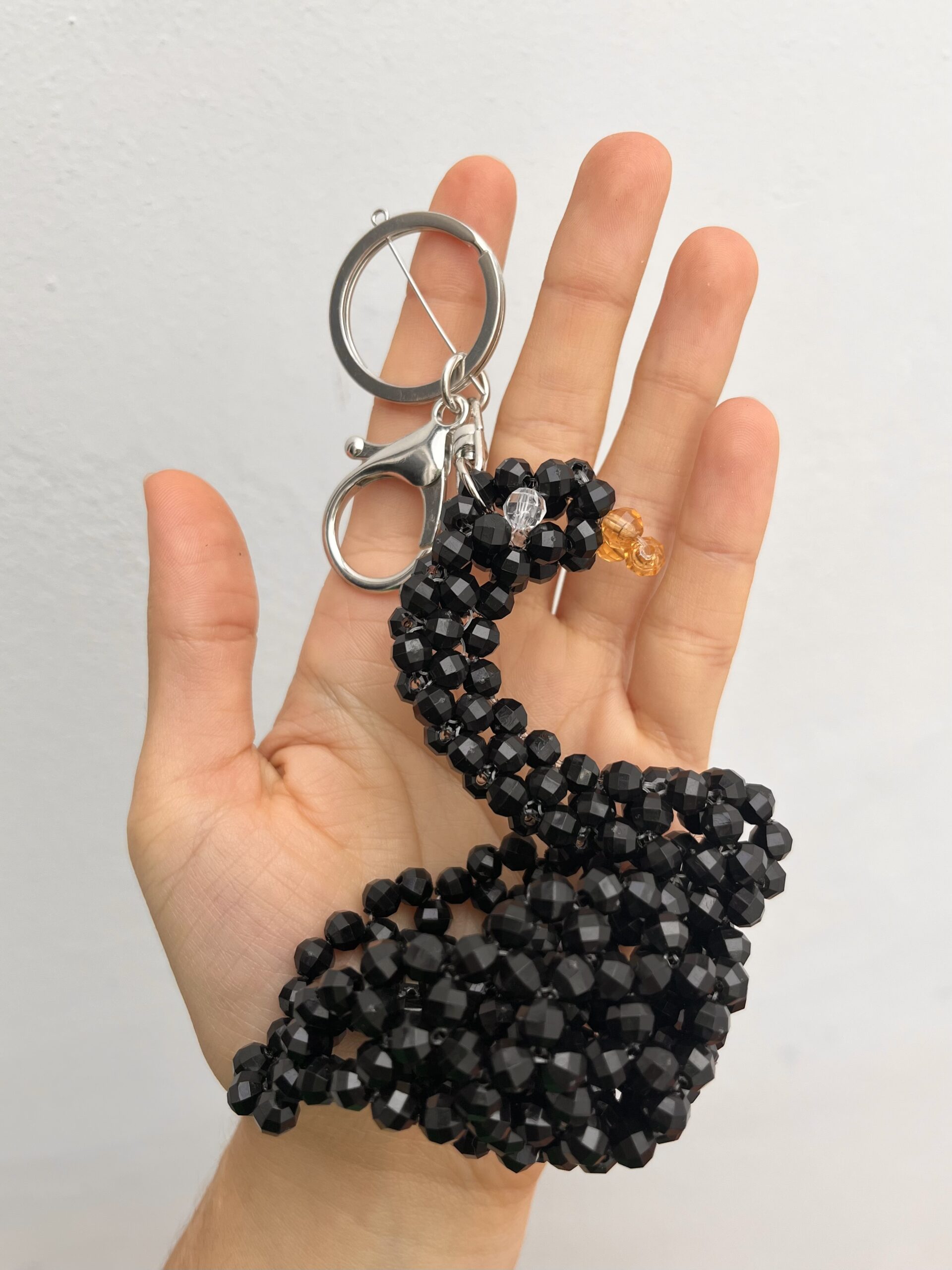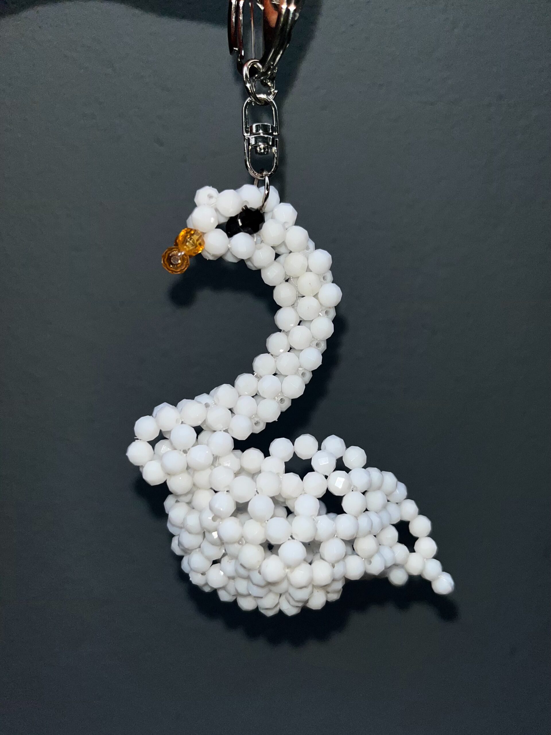 Llavero con argolla y mosquetón, dije de cisne de cuentas acrílico hecho a mano 🙂 9 cm