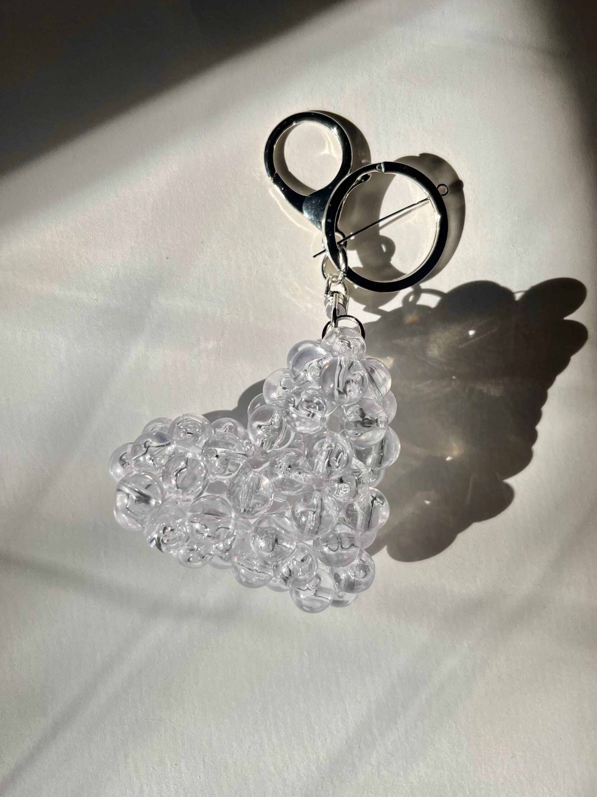 Llavero con argolla y mosquetón, dije de corazón de cuentas acrílico hecho a mano 🙂 5 cm